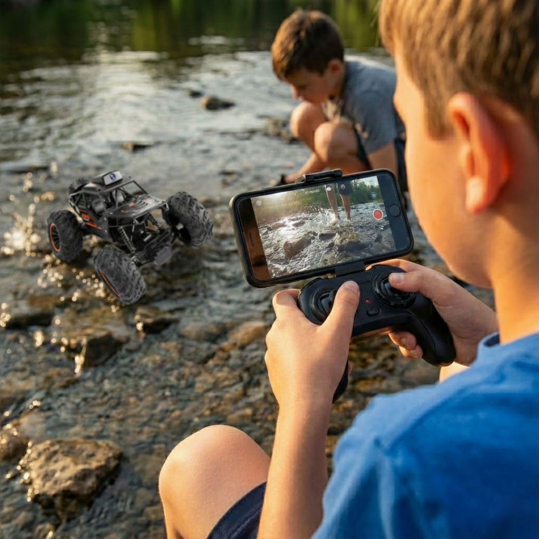 Džip na daljinski sa HD kamerom je poklon koji stvarno „radi posao“. Klinci ne dobijaju samo još jednu igračku, već vozilo kojim mogu da voze, snimaju i gledaju vožnju uživo na telefonu.