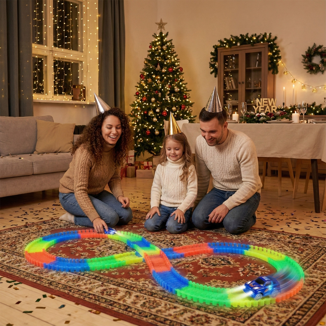 Poseban efekat svetleće staze čini igru još zanimljivijom, naročito uveče ili u prigušenom svetlu. Deca obožavaju da gledaju kako se autić kreće po stazi koja svetli, što igru čini drugačijom od klasičnih trkačkih setova.